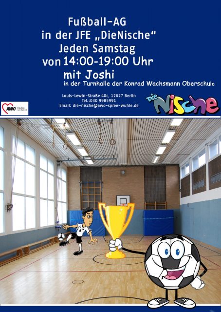 Die Nische Louis-Lewin-Straße 40c, Berlin, Berlin, GermanyJeden Samstag wird in der Turnhalle der Konrad Wachsmann- Oberschule Hallenfußball gespielt. Alter: 15-25 Jahren